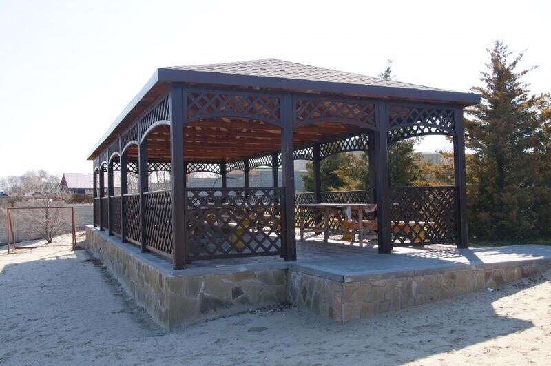 Беседка большая (50 - 80 человек) - (аренда с 11-00 до 23-00 (холодильник, столы, стулья, скамьи) 300 - 500 ₽/чел. (минимальная оплата за аренду 5000 ₽).