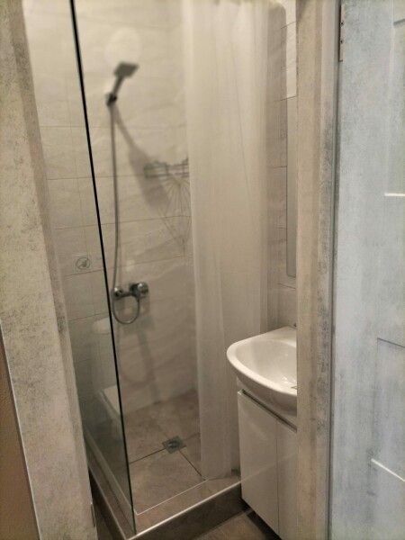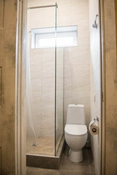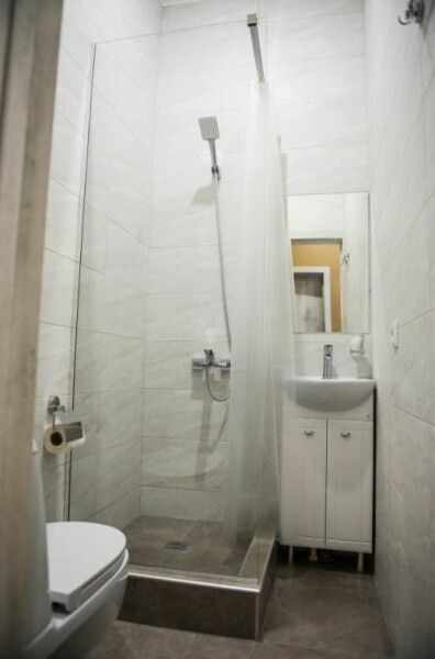 Ванная комната расположена на мансардном этаже и является общей для трёх комнат. В ней предусмотрены косметические принадлежности для удобства гостей.