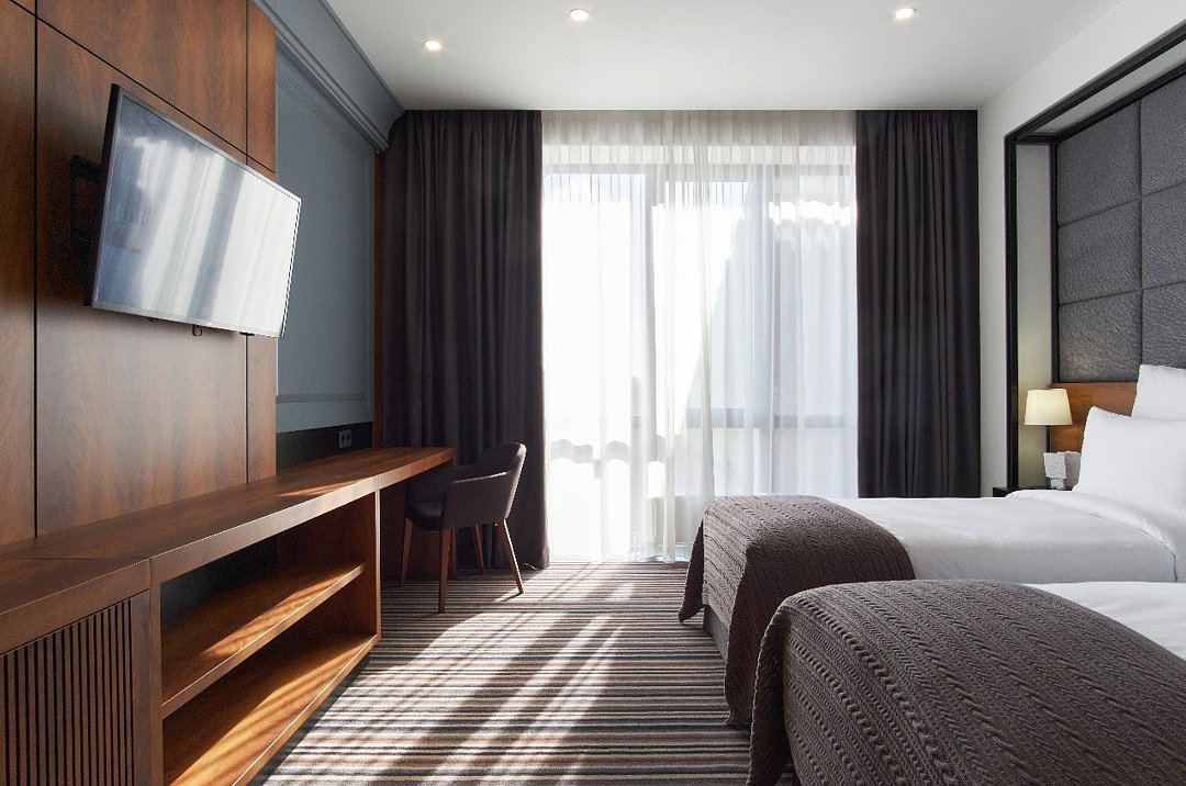 Wi-Fi, интернет, телефон, кондиционер, светильник, настольные лампы, фен, будильник, электронные замки, кофемашина, утюг, обогреватель, ванная комната, душевая кабина, санузел, теплый пол, халаты, банные полотенца, тапочки, гигиенические средства, косметические средства, две полутораспальные кровати, гипоаллергенное белье, гладильная доска, ортопедический матрас, шкаф для одежды, вешалки, письменный стол, багажная тумба, зеркало, пуфики, ковер, мини-бар, письменные принадлежности, чайный набор, обслуживание номеров, информационная карта, меню, сейф, минеральная вода, чайник, унитаз, мягкая мебель, косметическое зеркало, питьевая вода, ковровое покрытие, отопление, душ, вид на город, кресло, вид во двор, высокие потолки, меню подушек, стаканы, вид на стадион, стол, туалетные средства, туалет, панорамные окна, цифровое тв, внутренний телефон, телевизор с плоским экраном, мини-холодильник, гостиничная парфюмерия, теплые полы, номер для некурящих, usb порт, рабочий стол, фитнес-зона, чайная станция, умная колонка, фумигатор, уборка номера, набор для приготовления чая и кофе, услуги прачечной (платно), туалетные принадлежности премиум-класса, вешалки-плечики, бутилированная вода, мини-бар (платно), шапочка для душа, мыло, затемняющая штора, окна от пола до потолка, комната для переговоров (за дополнительную плату), косметические принадлежности премиум-класса, можно с питомцами, часы-будильник, тропический душВ гостиничном номере