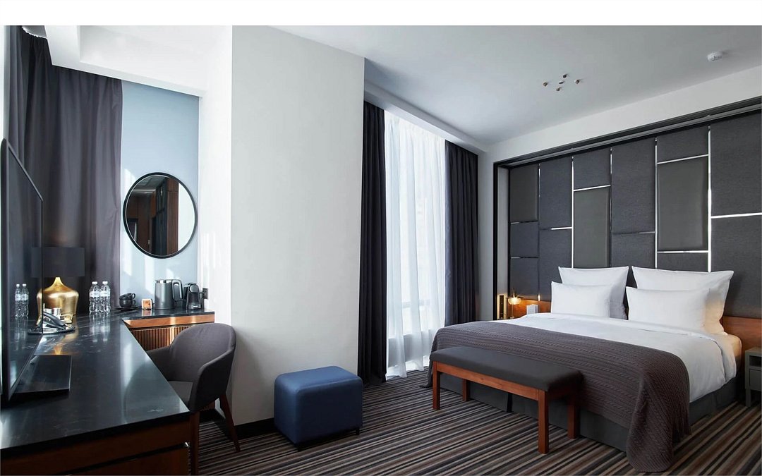 Wi-Fi, интернет, телефон, кондиционер, светильник, настольные лампы, фен, будильник, электронные замки, кофемашина, утюг, обогреватель, ванная комната, душевая кабина, санузел, теплый пол, халаты, банные полотенца, тапочки, гигиенические средства, косметические средства, кровать «Queen size», гипоаллергенное белье, гладильная доска, ортопедический матрас, шкаф для одежды, вешалки, письменный стол, багажная тумба, зеркало, пуфики, ковер, мини-бар, письменные принадлежности, чайный набор, обслуживание номеров, информационная карта, меню, сейф, минеральная вода, чайник, унитаз, мягкая мебель, косметическое зеркало, питьевая вода, ковровое покрытие, отопление, душ, вид на город, кресло, вид во двор, высокие потолки, меню подушек, стаканы, вид на стадион, стол, туалетные средства, туалет, панорамные окна, цифровое тв, внутренний телефон, телевизор с плоским экраном, мини-холодильник, гостиничная парфюмерия, теплые полы, номер для некурящих, usb порт, рабочий стол, фитнес-зона, чайная станция, умная колонка, фумигатор, уборка номера, набор для приготовления чая и кофе, услуги прачечной (платно), туалетные принадлежности премиум-класса, вешалки-плечики, бутилированная вода, мини-бар (платно), шапочка для душа, мыло, затемняющая штора, окна от пола до потолка, комната для переговоров (за дополнительную плату), косметические принадлежности премиум-класса, можно с питомцами, часы-будильник, тропический душВ гостиничном номере