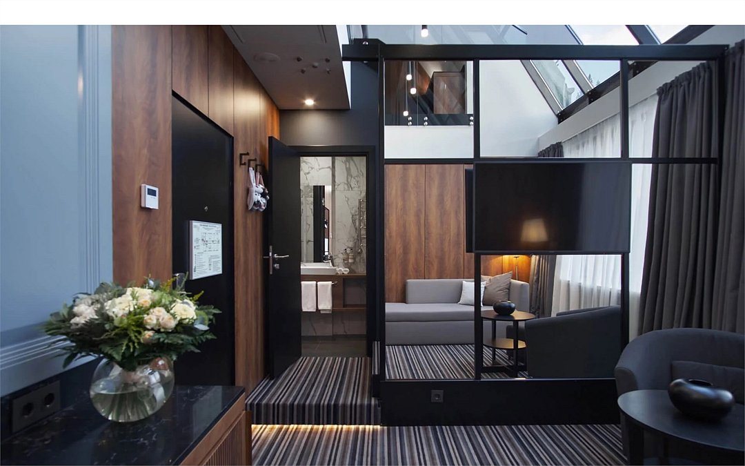 Просторный угловой сьют с панорамными окнами, из которых открывается восхитительный вид на исторический центр города. Номер площадью 35м2 оборудован расширенной рабочей зоной, сейфом, мини-баром, чайной станцией и кофемашиной Nespresso. Кровать queen-size. В ванной комнате — премиальный косметический набор The Act. Возможно размещение на дополнительном месте (по запросу).Услуги и удобства