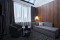 Роскошный панорамный сьют с большой гостиной, баром и лаунж-зоной. Панорамный сьют площадью 72 м2 располагает отдельным лаунджем, большой гостиной с баром и просторной спальней c кроватью queen-size. Номер находится на верхнем этаже отеля. Из панорамных окон открывается живописный вид на исторический центр города и центральную улицу. В номере есть собственный лаундж на 8 человек, который можно использовать в качестве индивидуальной переговорной. Penthouse оборудован собственной кухней, рабочей зоной, сейфом, мини-баром, чайной станцией и кофемашиной Nespresso. В ванной комнате — душевая кабина, отдельно стоящая ванна и косметические принадлежности премиум уровня The Act. Номер рассчитан на пребывание как пары, семьи с детьми или компании друзей, так и взыскательного бизнесмена. Возможно размещение на дополнительном месте (по запросу).Услуги и удобства