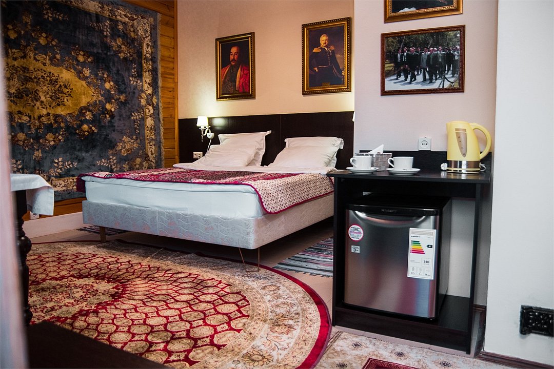 Однокомнатный номер площадью до 25 м.кв с одной двухспальной кроватью размера "king-Size",ванна,телефон,чайник,фен,мини-бар.Услуги и удобства