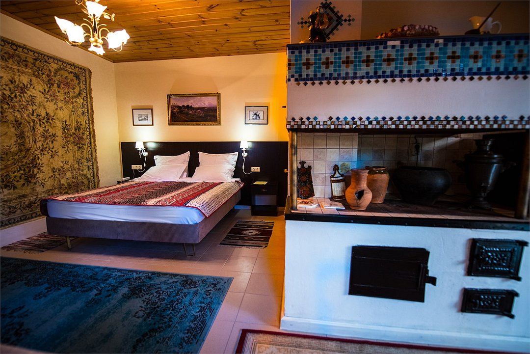 телевизор, Wi-Fi, телефон, настольные лампы, фен, ванна, теплый пол, халаты, тапочки, гигиенические средства, косметические средства, терраса, кровать «King size», тумбы, стулья, обеденный стол, зеркало, мини-бар, письменные принадлежности, чайный набор, набор посуды, чайник, унитаз, раковина, питьевая вода, ковровое покрытие, отопление, вид во двор, стаканы, стол, туалетные средства, туалет, сплит-система, цифровое тв, мини-холодильник, москитная сеткаВ коттедже