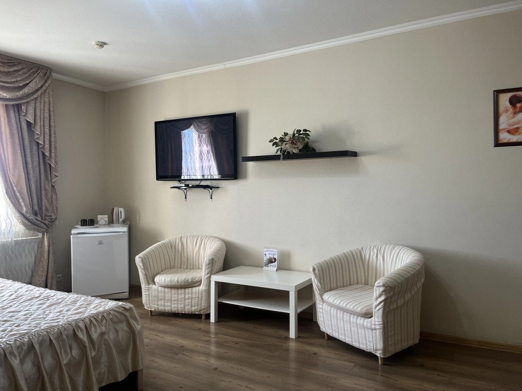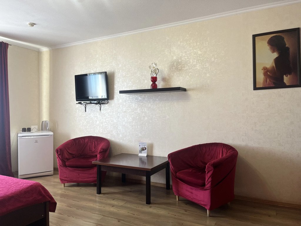 В номере гостей ждут DVD-плеер, телевизор и халат. Оснащение зависит от выбранной категории номера.