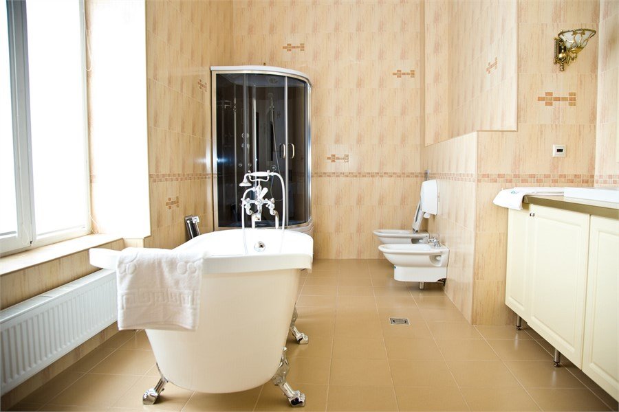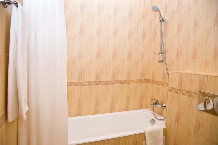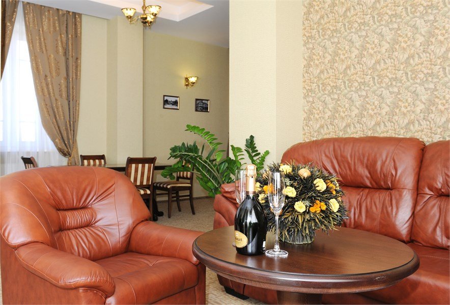 Комфортный и удобный номер высшей категории. Состоит из двух комнат большой площадью – гостиной и спальни. В номере имеется буквально все, что может потребоваться современному человеку – предметы мягкой мебели, стол для работы, бесплатный доступ в интернет, мини-бар. Изысканная ванная комната оснащена современной душевой кабинкой и шикарной ванной.Услуги и удобства