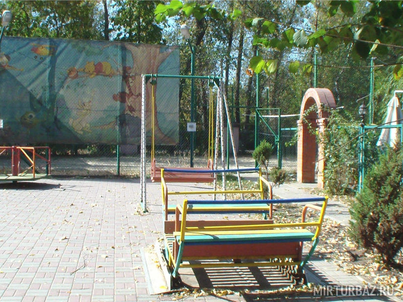 На всей территории базы отдыха есть множество уголков для развлечения детей, это и батуты, и мини-карусели, горки и многое другое.