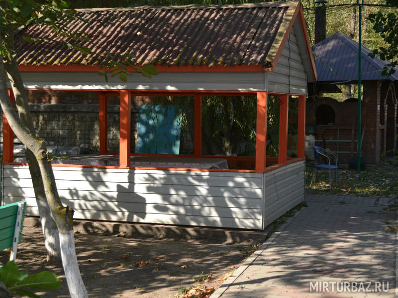 Большое количество беседок как в оживленных местах базы, так и в укромных тихих зеленых уголках. Вместимость от 4 до 30 человек.