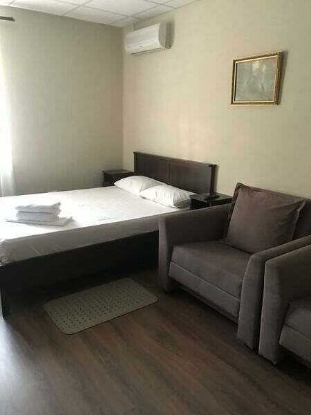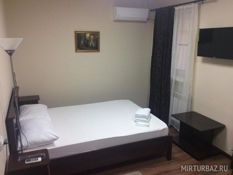 Площадь номера: 22 м². Звукоизолированный четырехместный номер с кондиционером и балконом. Номер в гостинице со всеми удобствами: двуспальная кровать, диван, шкаф, стол, стулья, телевизор, горячая, холодная вода, холодильник, тумбы.