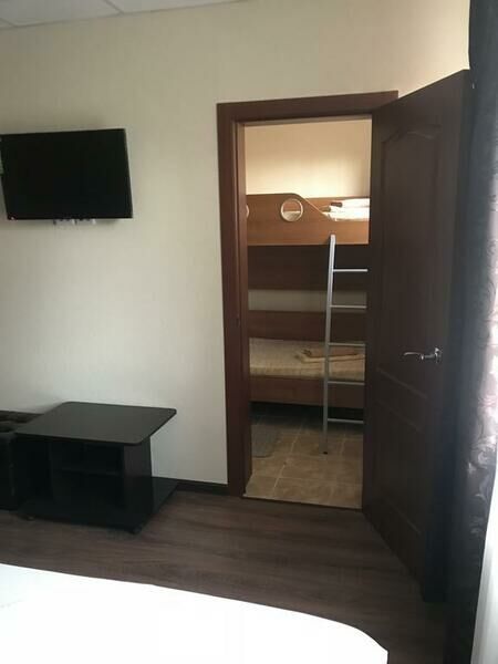 Площадь номера: 17 м². В числе удобств этого звукоизолированного семейного номера мини-кухня и кондиционер. В номере: двуспальная кровать, двухъярусная кровать диван, шкаф, телевизор.