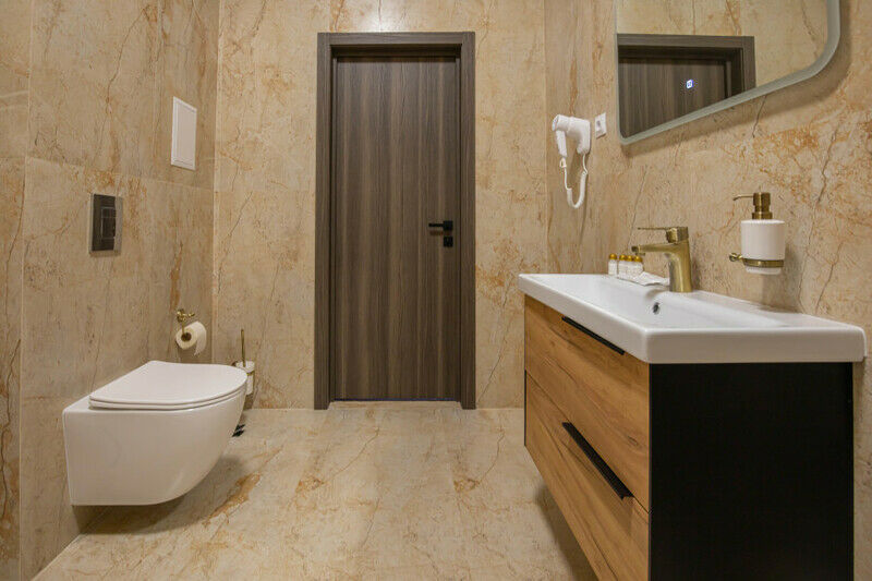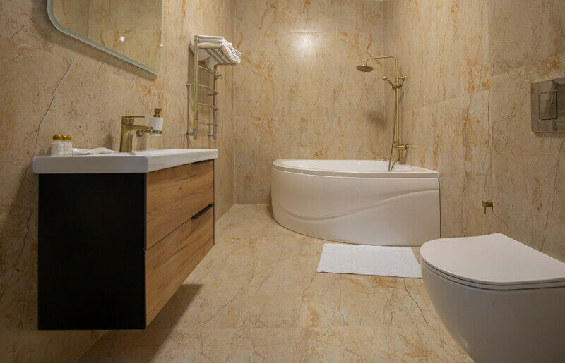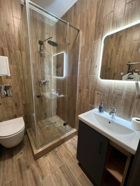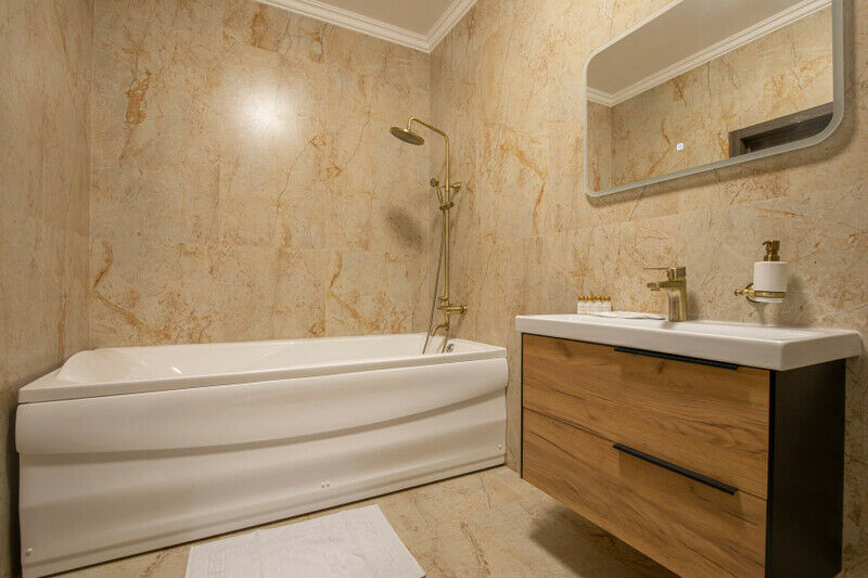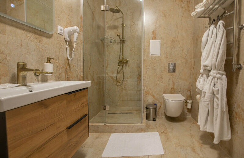 Санузел с душем и джакузи, ТВ, мини-холодильник