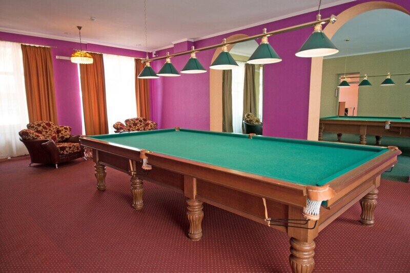 Бильярд — идеальная игра для тех, кто хочет спокойно пообщаться в тесном кругу близких или друзей. В бильярдной установлено 2 двенадцатифутовых бильярдных стола .