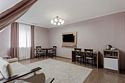 Просторный номер-студия состоит из двух зон - гостиной и спальни.