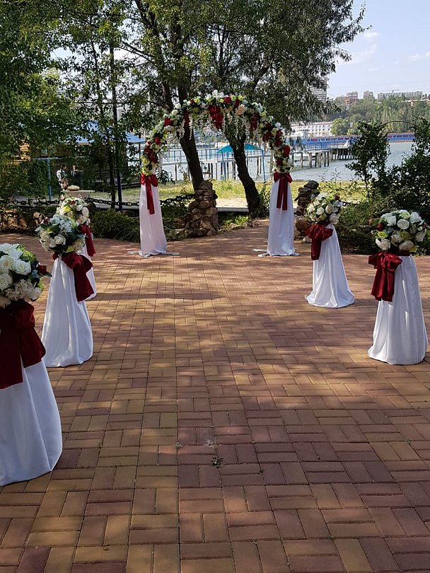 - Оформленная летняя площадка — идеальное место для брачной церемонии.