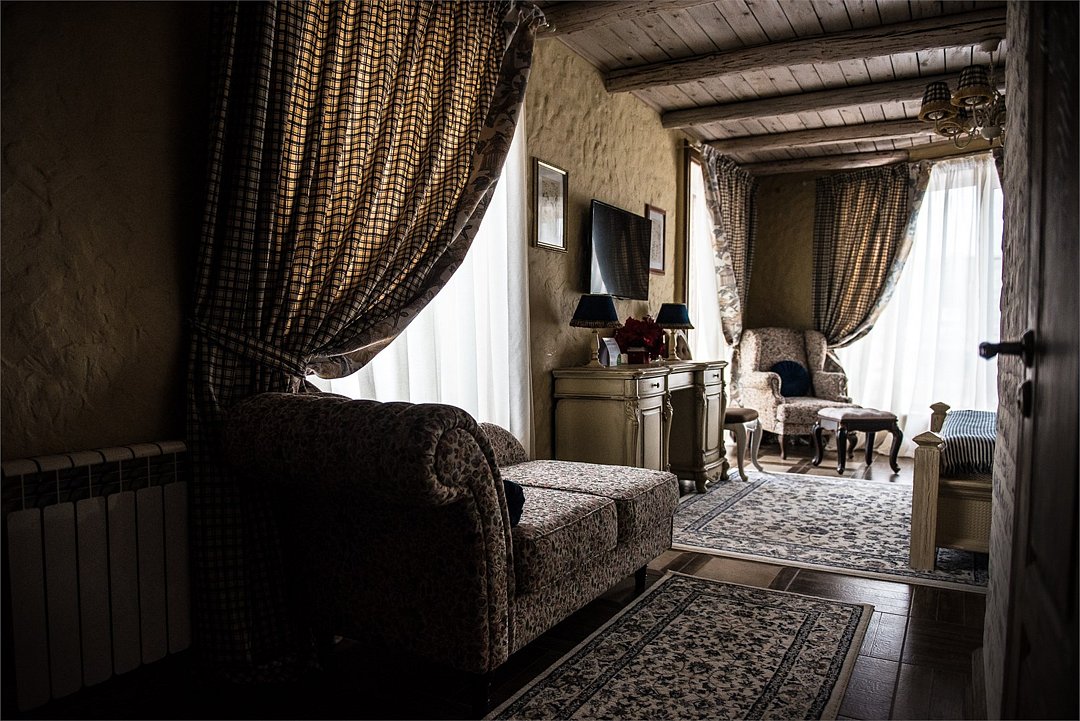 Номер находится на первом этаже Семейного корпуса. Располагает гримерной комнатой для свадебных сборов.Услуги и удобства