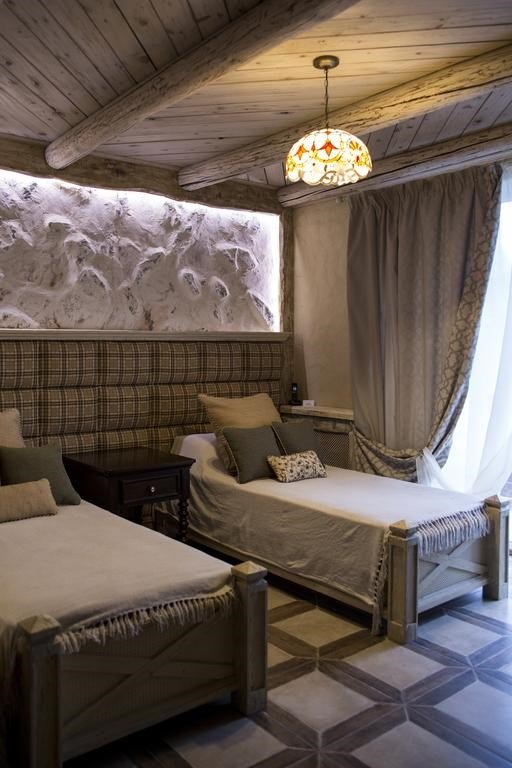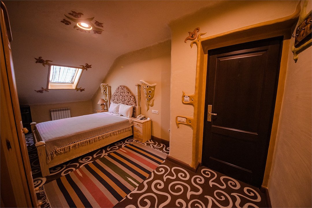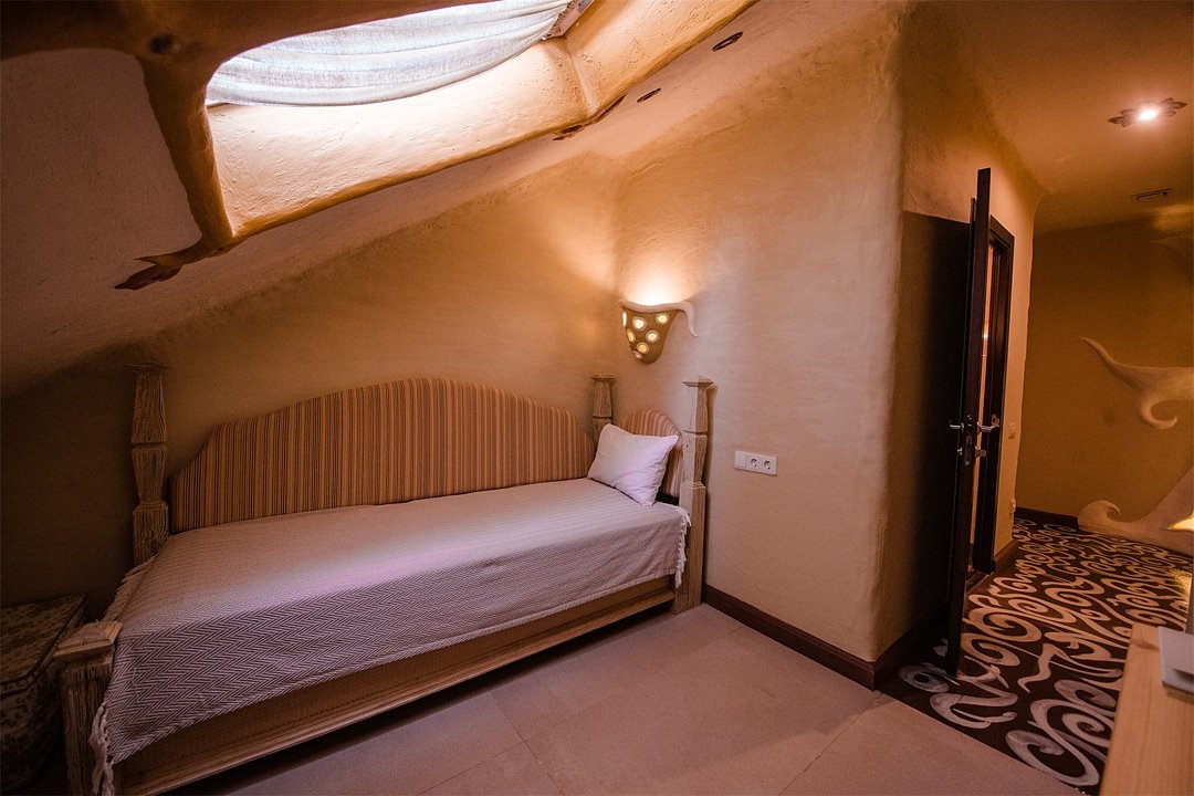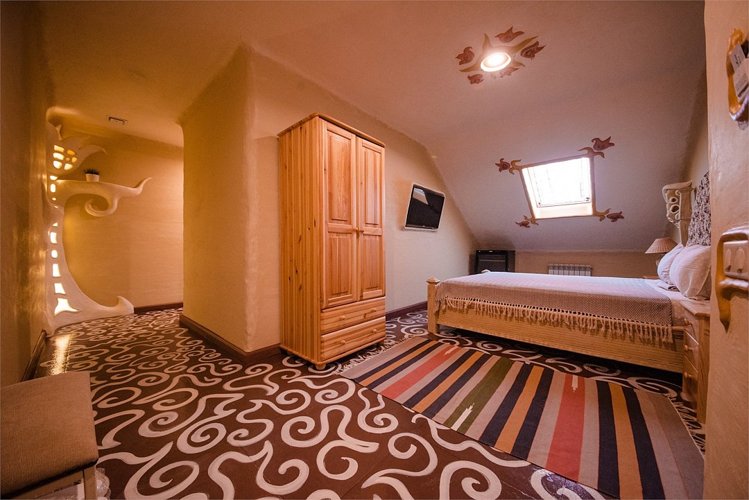 телевизор, кабельное телевидение, Wi-Fi, телефон, холодильник, кондиционер, фен, ванная комната, халаты, тапочки, гигиенические средства, двуспальная кровать, две односпальные кровати, шкаф для одежды, вешалки, две комнаты, чайный набор, информационная карта, меню, чайник, душ, мансардные окнаВ номере