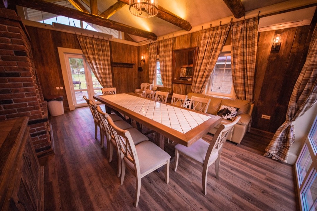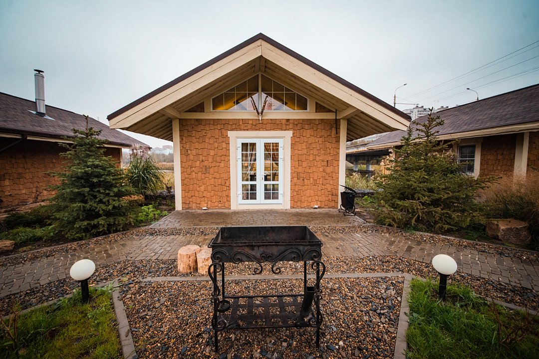 В барбекю-домике горячая/холодная вода, холодильник, ТВ , балкон на реку, обогрев в зимнее время и кондиционер в летнее.