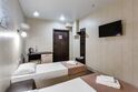 Есть комнаты, как с большой двуспальной кроватью, так и с двумя односпальными кроватями. Также в есть семейные комнаты для трехместного размещения с одной двуспальной кроватью и одной односпальной кроватью.