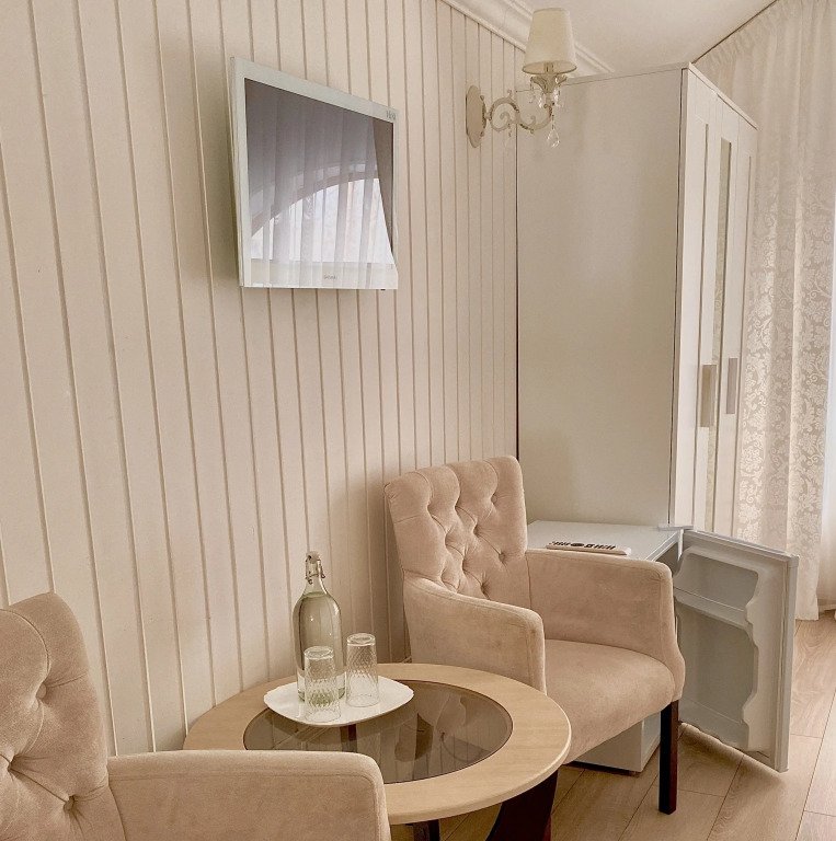 Чтобы вы могли отдохнуть после долгого дня, в номере есть телевизор и халат. Перечисленные услуги есть не во всех номерах.
