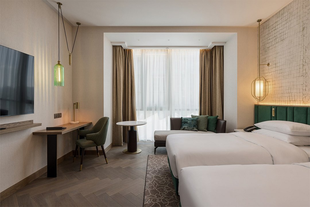 Насладитесь расслабляющим отдыхом и живописным видом на центр города, который открывается из панорамных окон номера. Современный элегантный интерьер дополнен двумя кроватями (Twin), уютным диваном для чтения и большим рабочим столом., Удобства в номере: - Бесплатный Wi-Fi - Телевизор 65” - Принадлежности для приготовления чая и кофе - Сейф - Мини-бар - Утюг и гладильная доска - Дополнительная кровать (по запросу) На территории спорт клуба действуют возрастные ограничения (16+).Услуги и удобства