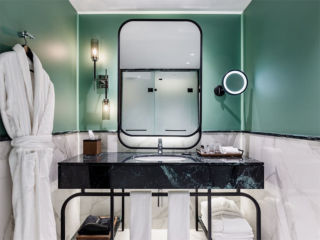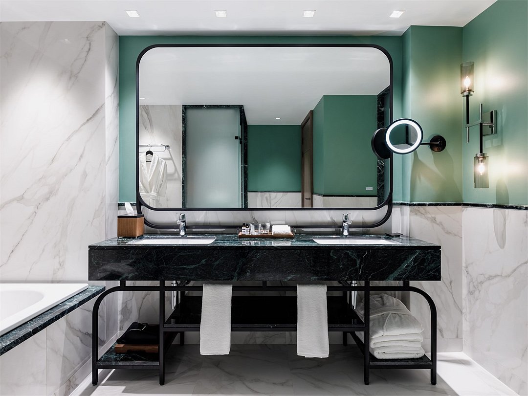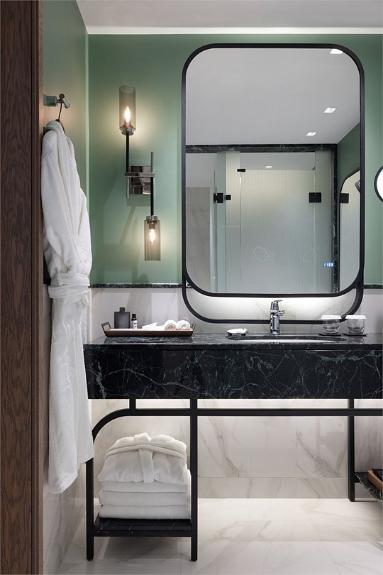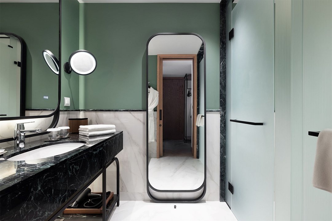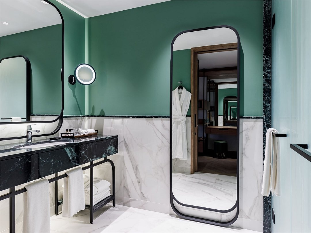 Wi-Fi, телефон, система климат-контроля, светильник, настольные лампы, фен, будильник, электронные замки, утюг, теплый пол, банные принадлежности, халаты, банные полотенца, тапочки, косметические средства, кровать «King size», гладильная доска, диван, шкаф для одежды, гардеробная, вешалки, письменный стол, багажная тумба, зеркало, ковер, эксклюзивная мебель, обслуживание номеров, сейф, косметическое зеркало, душ, вид на город, кулер на этаже, паркет, высокие потолки, стаканы, стул, туалетные средства, туалет, телевизор с плоским экраном, номер для некурящих, фанкойл, USB-порт, фригобар, футон, чайная станция, можно с питомцамиВ гостиничном номере