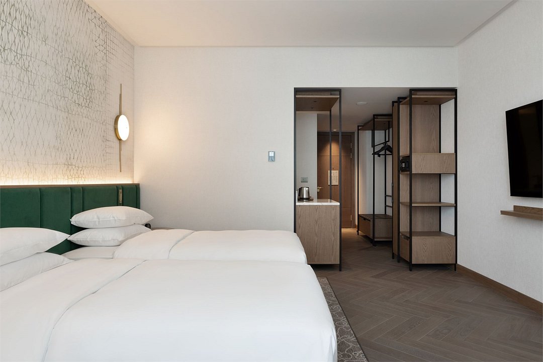 Отдохните номере площадью 36 кв. м. с панорамными окнами, свет из которых заливает всю комнату. Две кровати (Twin), уютный диван для чтения и большой рабочий стол. Удобства в номере: - Бесплатный Wi-Fi - Телевизор 65” - Принадлежности для приготовления чая и кофе - Сейф - Мини-бар - Утюг и гладильная доска - Дополнительная кровать (по запросу) На территории спорт клуба действуют возрастные ограничения (16+).Услуги и удобства