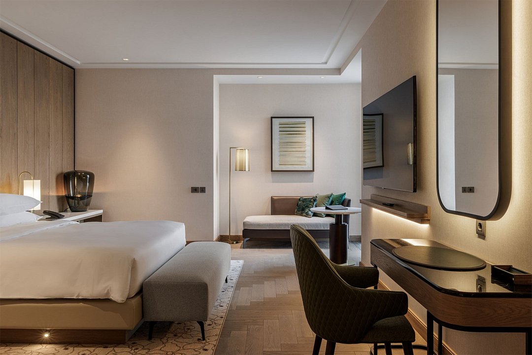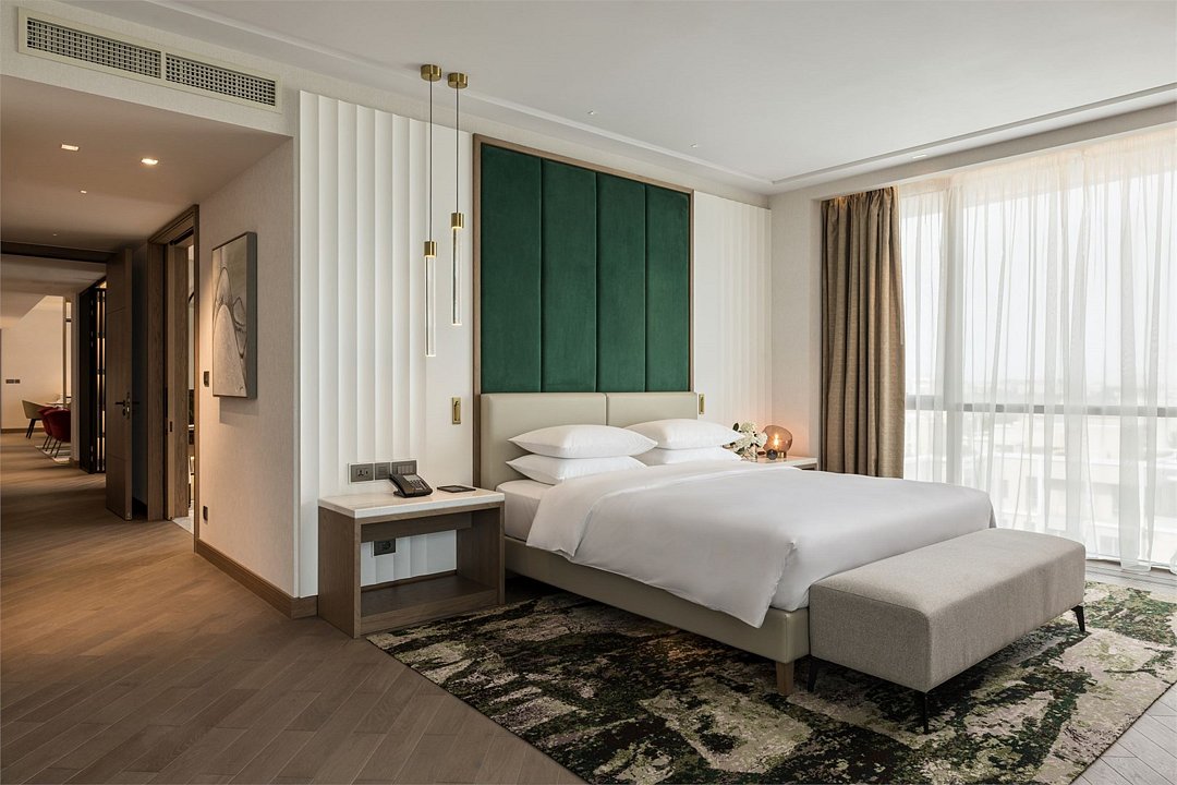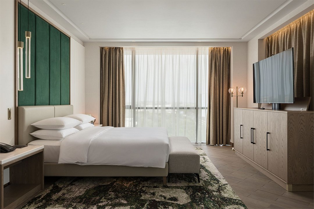 Расслабьтесь в современном номере площадью 36 кв.м. с панорамными окнами, свет из которых заливает все пространство. В просторной комнате есть все для комфорта: одна большая двуспальная кровать (King), уютный диван для чтения и удобный рабочий стол. Удобства в номере: - Бесплатный Wi-Fi - Телевизор 65” - Принадлежности для приготовления чая и кофе - Сейф - Мини-бар - Утюг и гладильная доска - Дополнительная кровать (по запросу) На территории спорт клуба действуют возрастные ограничения (16+).Услуги и удобства