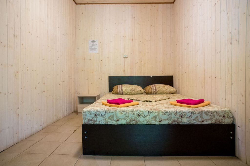В номере: одна двуспальная кровать. Санузел на этаже, есть кухня на 1 этаже.