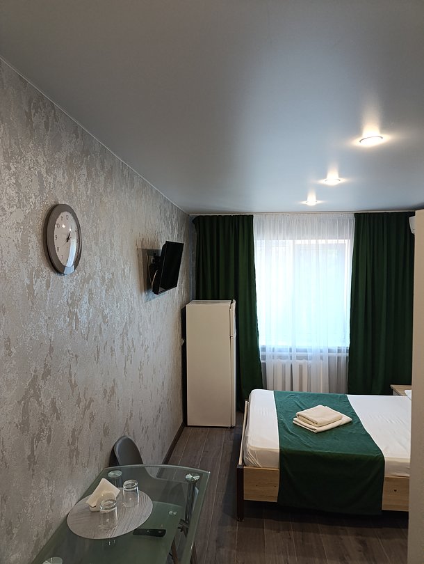 Бюджетный номер с 1 двуспальной кроватью.Душ/туалет на этаже