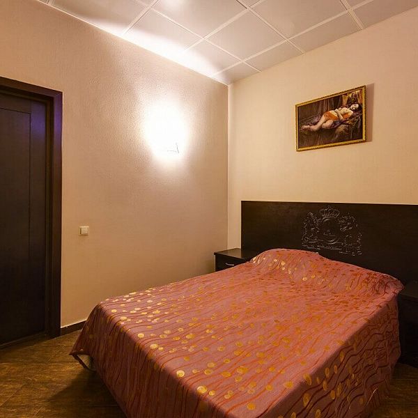 Номера класса «Стандарт» уютно обставлены и в них вы найдете двуспальную кровать, прикроватную тумбочку и журнальный столик. Современная сплит-система обеспечит вам комфортную температуру, а телевизор с жидкокристаллическим экраном предоставит возможность интересно провести свободное время. В апартаментах категории «Люкс» размещена круглая двуспальная кровать, которая не только оригинально выглядит, но и гораздо удобнее обычной кровати. Также в номере этого класса вы найдете прикроватную тумбочку, журнальный столик и мягкую мебель (два кресла и пуфик для ног). Помимо телевизора и сплит-системы, в номере также есть холодильник.Услуги и удобства