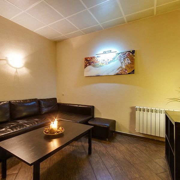 Инфраструктура: тапочки, бассейн, зона отдыха, полотенца, душСтоимость — 1290 ₽/час (до 4 человек), дополнительный гость — 50 ₽/час.