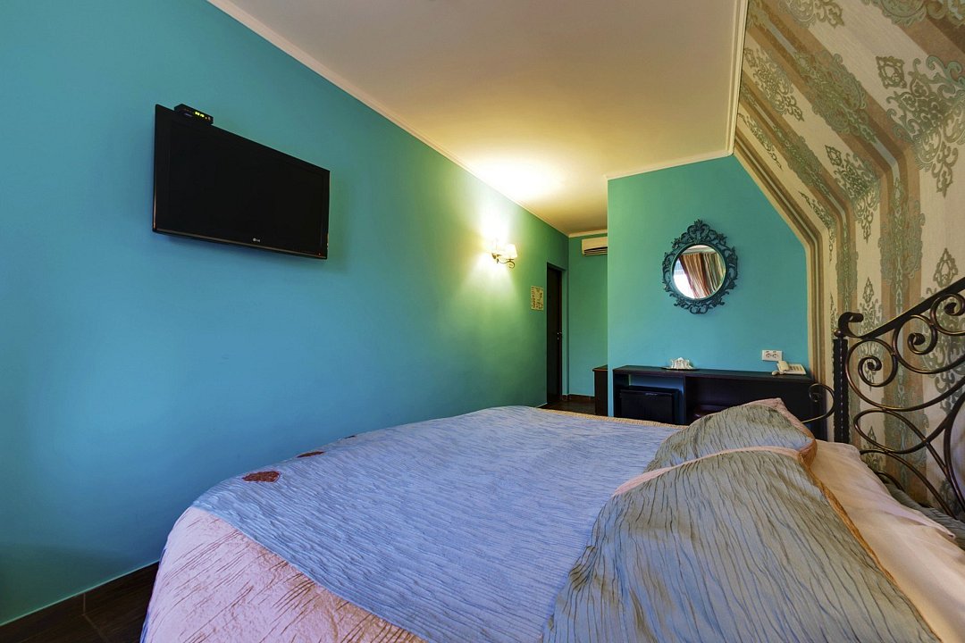 Трехэтажное здание (без лифта) включает в себя 24 комфортабельных номера категории Стандарт, Люкс и Делюкс. Во всех номерах есть собственная ванная комната с душем, телевизор-ЖК, сплит-система, холодильник, беспроводной интернет.