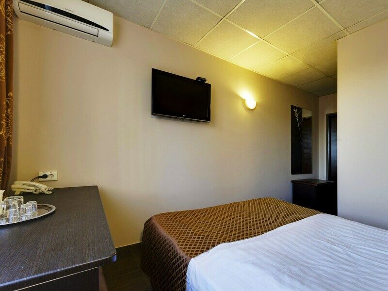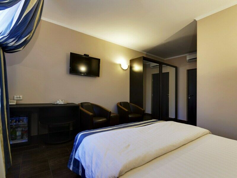 Wi-Fi, душевая кабина, банные полотенца, двуспальная кровать, тумбы, шкаф для одежды, вешалки, зеркало, мини-бар, унитаз, раковина, душ, стаканы, сплит-система, внутренний телефон, телевизор с плоским экраном, мини-холодильникВ номере