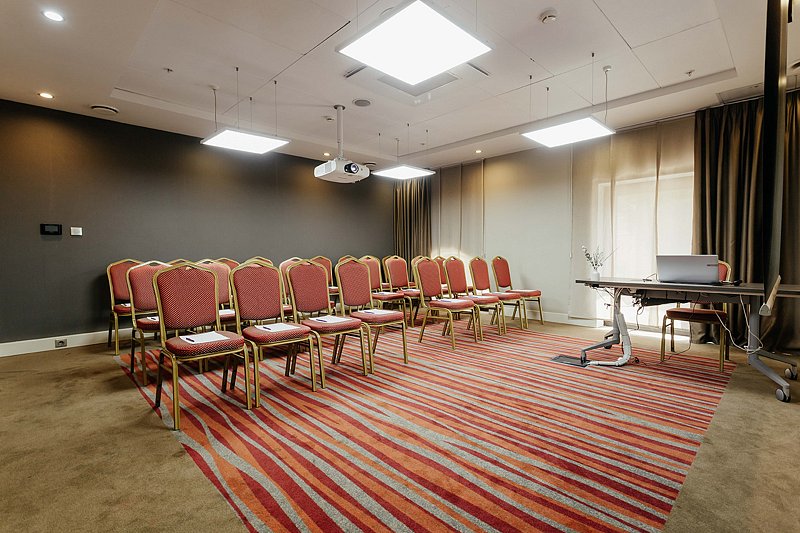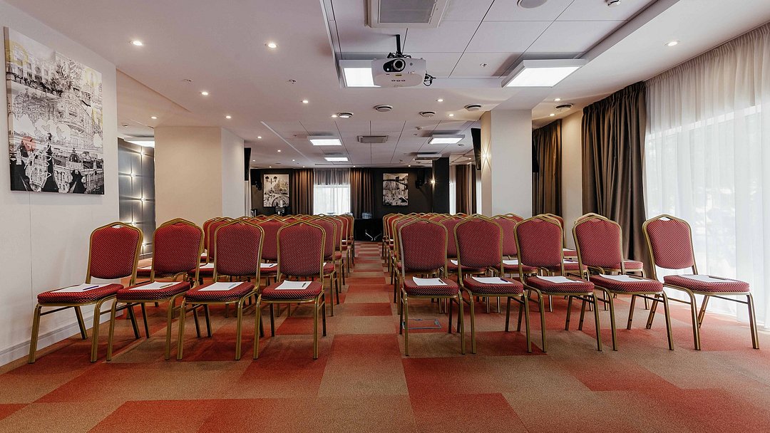 Данный конференц-зал прекрасно подходит для проведения бизнес-мероприятий любого формата: совещаний, семинаров, лекций или презентаций. Здесь есть все необходимое для проведения бизнес-мероприятия на самом высоком уровне. Площадь зала — 37 кв. м.