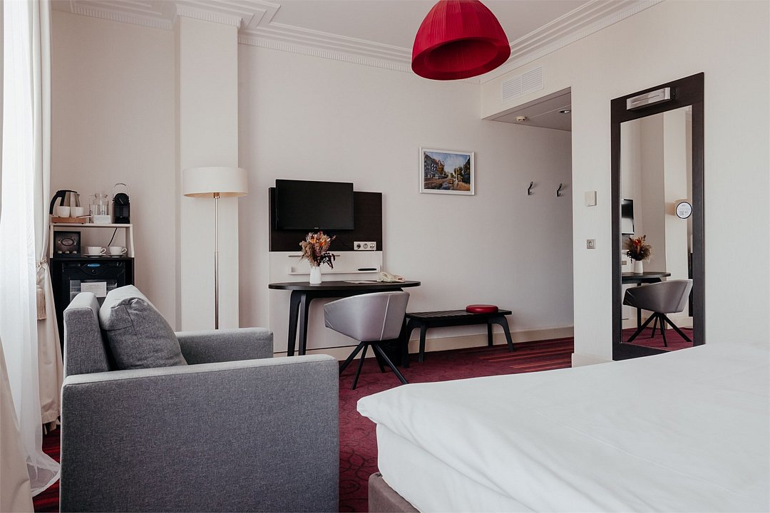 Гостям предлагаются уютные номера разных категорий: Стандарт, Привиледж и Люкс, каждый из них оформлен в оригинальном дизайне, созданном бельгийскими специалистами. Каждое оформление номера продумано до мелочей, чтобы создать идеальные условия для отдыха. Все помещения оборудованы чайниками и комплектами для приготовления чая. Для гостей номеров категорий Привиледж и Люкс также предусмотрены капсульные кофемашины и мини-бары. Отель создает атмосферу домашнего уюта, благодаря ортопедическим матрасам и подушкам, туалетным принадлежностям, наборам косметики. Гостям с детьми предоставляется возможность установки детской кроватки, а для семей с подростками или компаний друзей доступны смежные номера.