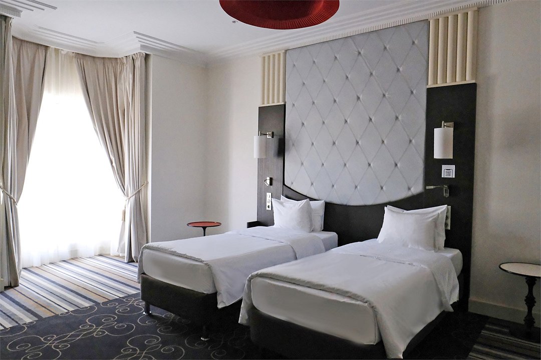 Просторный номер оборудован Wi-Fi, рабочей зоной, сейфом, ЖК ТВ с кабельными и спутниковыми телеканалами, мини-баром, станцией для приготовления кофе и чая. Комфортные кровати со специальными ортопедическими матрасами позволят Вам по-настоящему расслабиться, а гарантией хорошего сна послужат шторы блэкаут. Каждый номер включает в себя ванную комнату, оснащенную премиальной органической косметикой, феном, тапочками и косметическими принадлежностями.Услуги и удобства