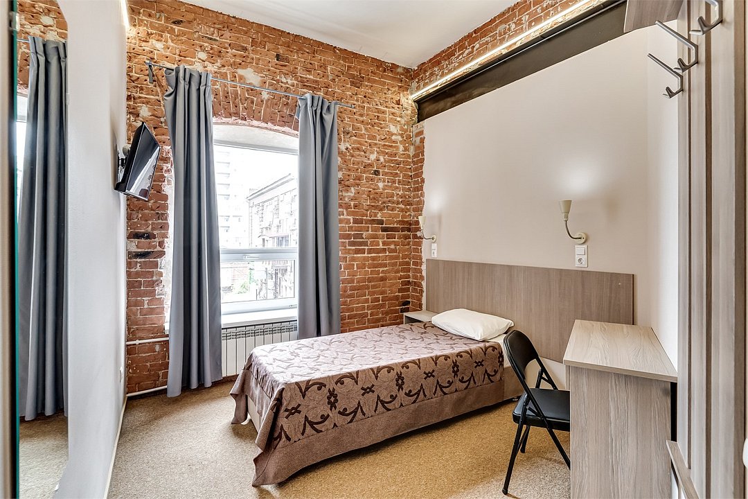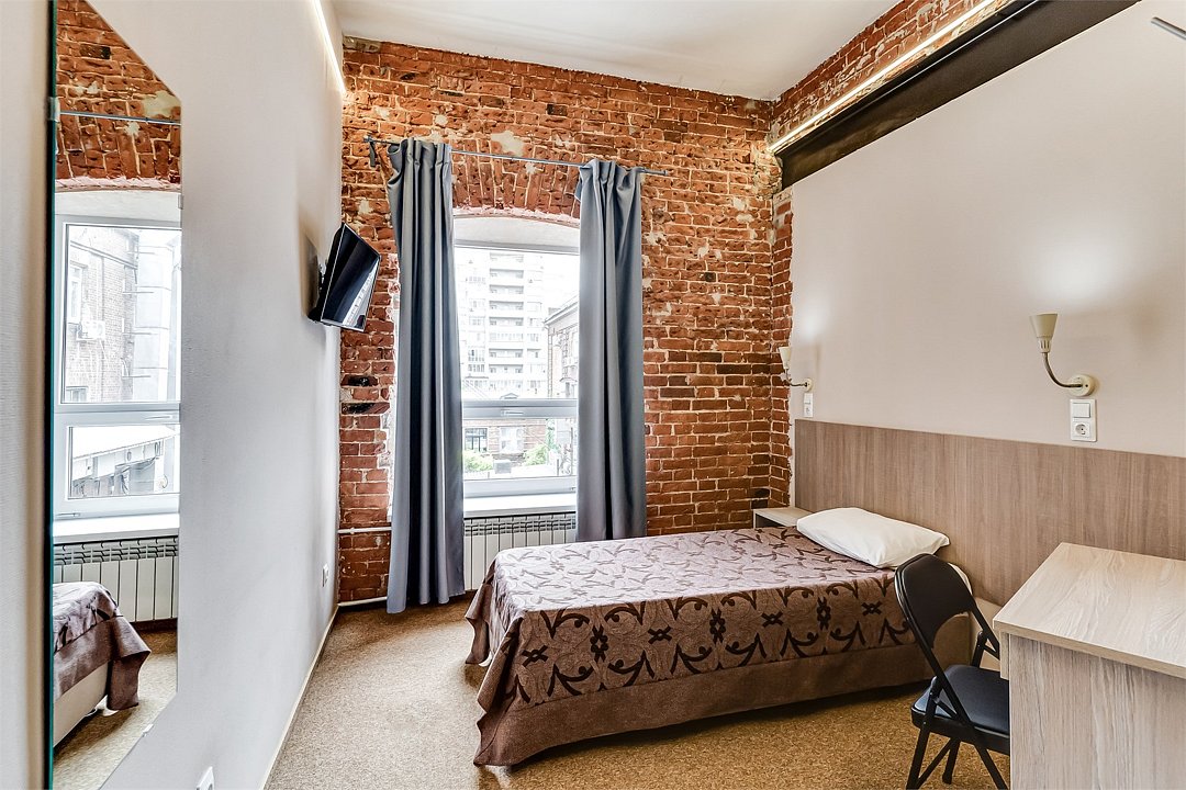 ЭКОНОМ одноместный с общей ванной комнатой - это небольшой номер, в котором комфортно может разместится 1 человек. В номерах данной категории одно односпальная кровать (80 см. х 200 см.). Возможно размещение еще одной дополнительной кровати. Хотим обратить внимание. санузел находится вне номера. Гостям предоставляется комплект из 2-х полотенец. В номере телевизор. На всей территории отеля бесплатный WI-FI. В Лофт-отеле "Набоков" оборудована просторная и уютная кухня-столовая, где можно приготовить еду, разогреть обед, выпить чашечку кофе или чая, приятно провести время с книжкой. Кофе, чай, сахар - комплимент от Лофт-отеля "Набоков"Услуги и удобства