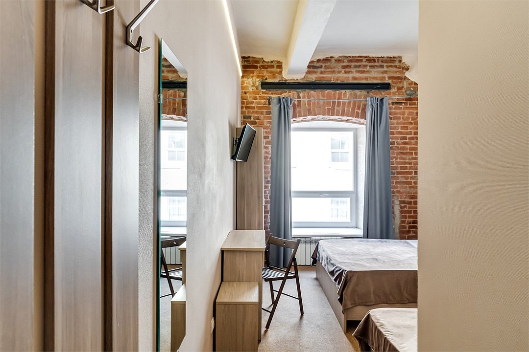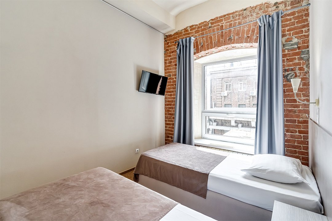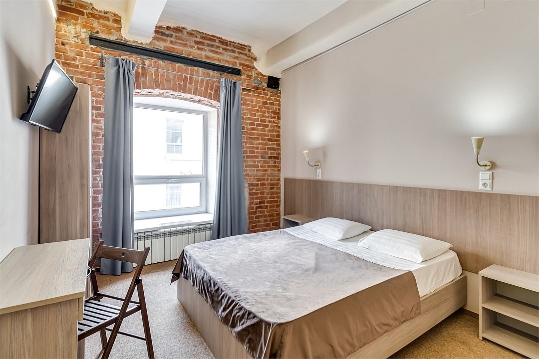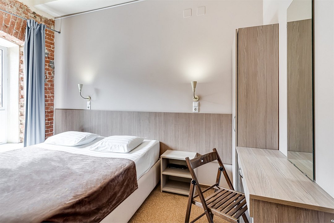 ЭКОНОМ двухместный с общей ванной комнатой - это небольшой номер, в котором комфортно может разместится 2-е человек. В номерах данной категории одна большая двуспальная кровать (160 см. х 200 см.) или две односпальные кровати (80 см. х 200 см.). Возможно размещение еще одной дополнительной кровати. Хотим обратить внимание. санузел находится вне номера. Каждому гостю предоставляется комплект из 2-х полотенец. В номере телевизор. На всей территории отеля бесплатный WI-FI. В Лофт-отеле "Набоков" оборудована просторная и уютная кухня-столовая, где можно приготовить еду, разогреть обед, выпить чашечку кофе или чая, приятно провести время с книжкой. Кофе, чай, сахар - комплимент от Лофт-отеля "Набоков"Услуги и удобства