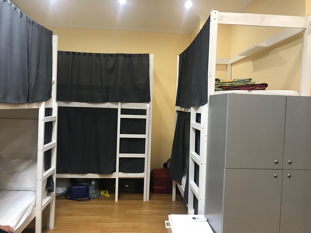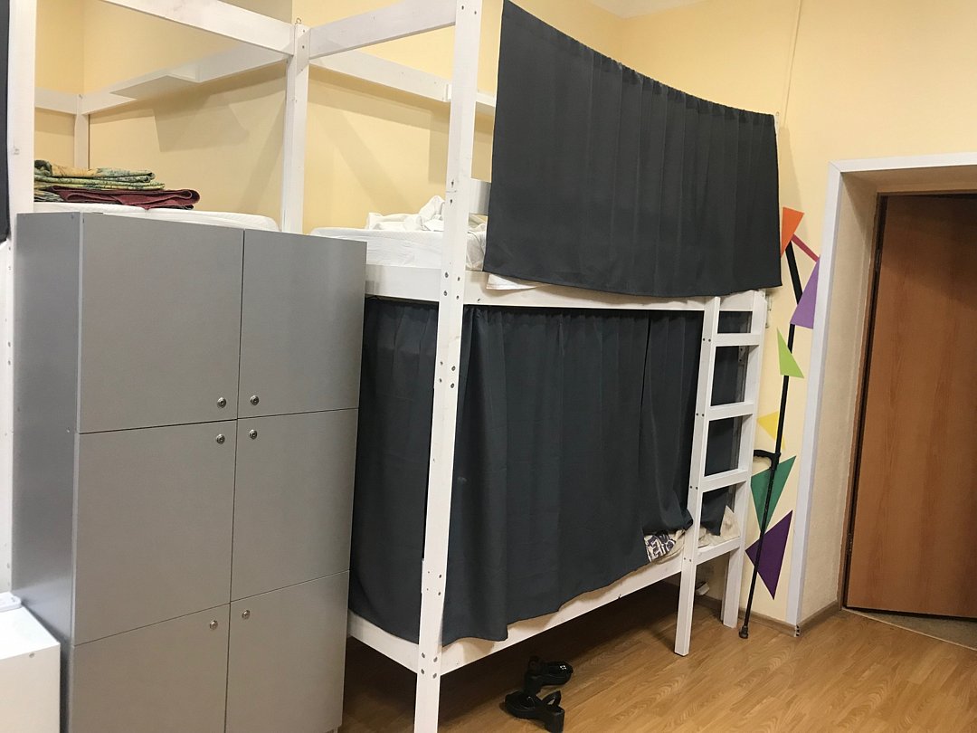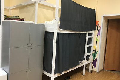 Двеннадцатиместный общий номер со шторками и шкафчикамиВ номере