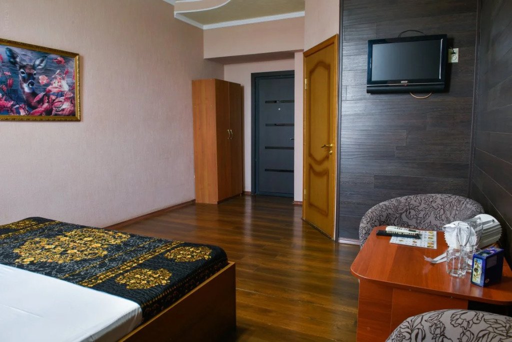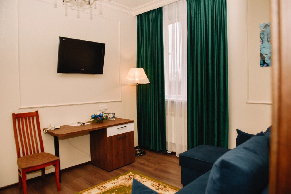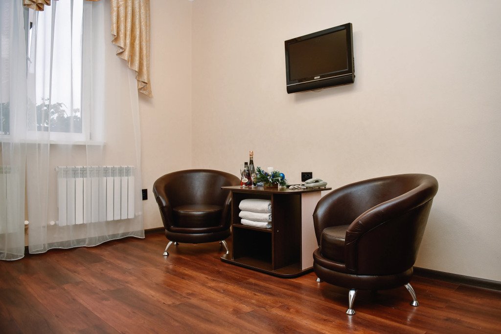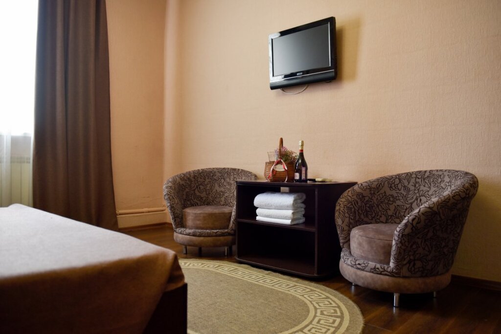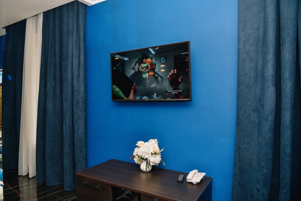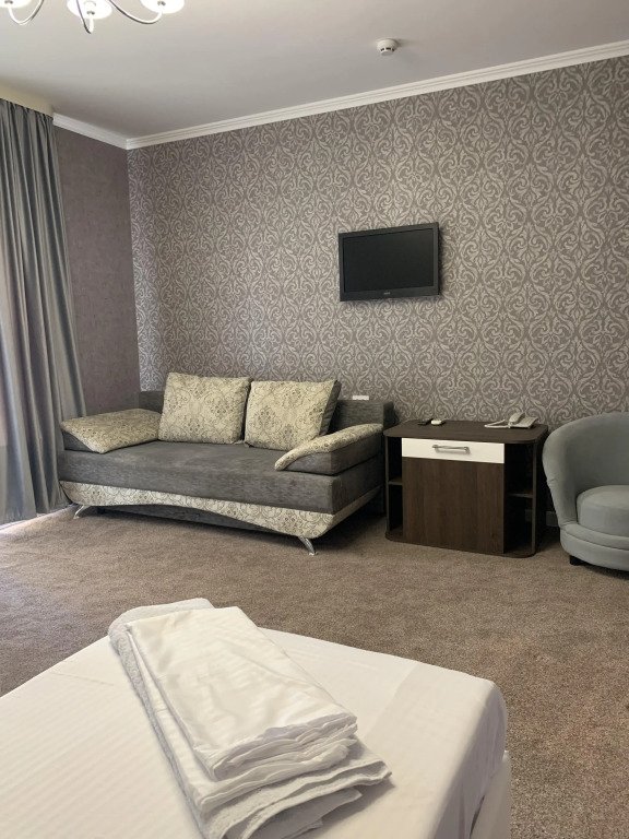 В номере вы найдёте телевизор, мини-бар и халат. Оснащение зависит от выбранной категории номера.