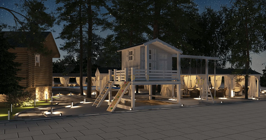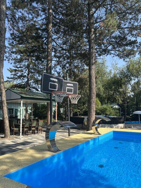 Детская площадка и бассейн: специально оборудованная детская площадка, где дети могут играть на свежем воздухе и наслаждаться играми на батуте. Кроме того, в парк-отеле есть подогреваемый детский бассейн, где дети могут плавать и веселиться.
