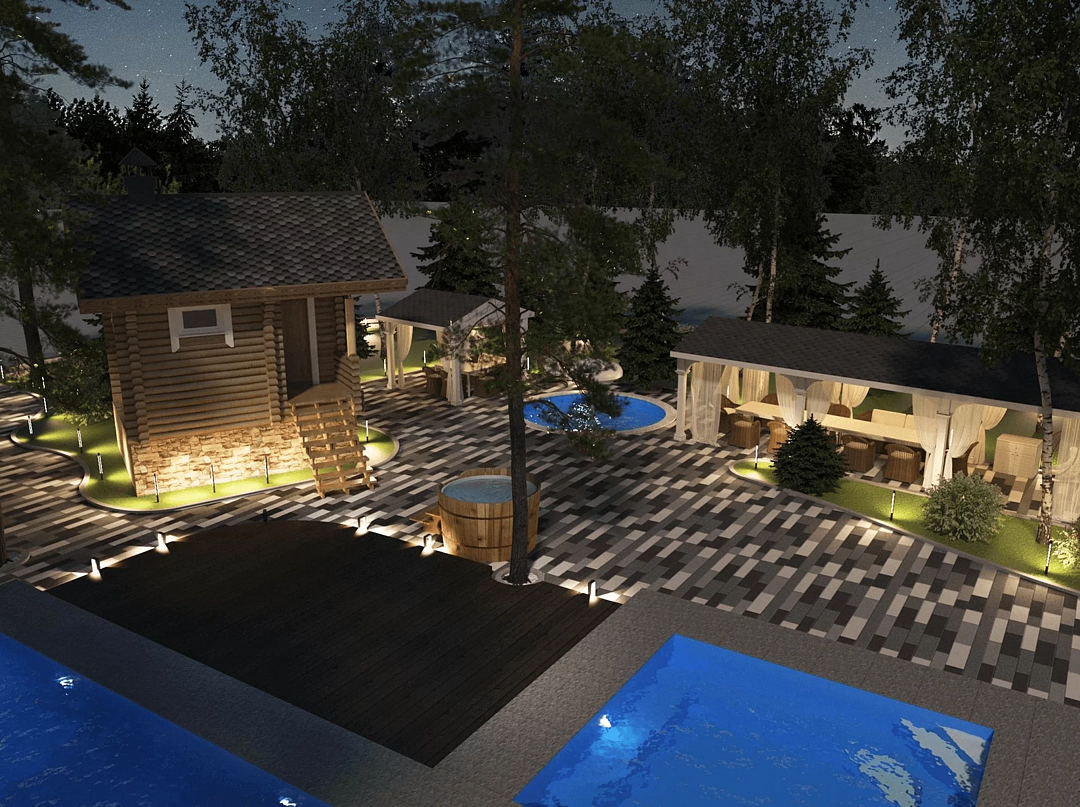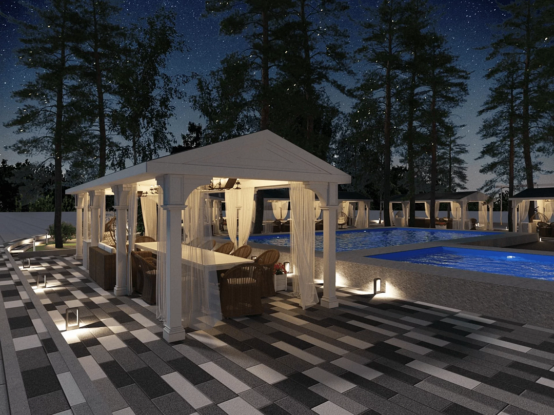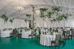Второй день свадьбы идеально провести на летней площадке в комфортабельной беседке, в окружении вековых елей и берез, освежиться в бассейне, расслабиться в джакузи, а также попариться в русской бане по традициям наших предков. На территории для Вашего удобства располагается закрытая парковка.