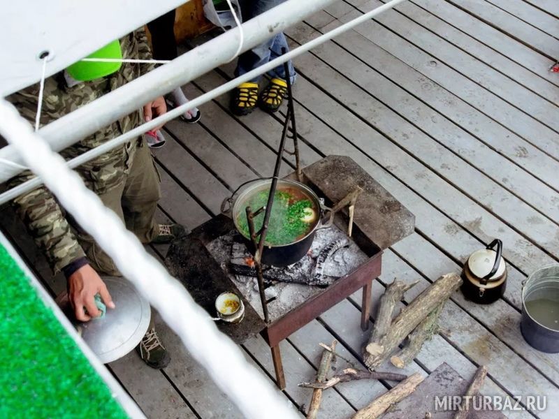 ПЛОТ – это целый удобный и универсальный плавучий лагерь (72м.кв. палатки, крытый стол, такелаж, посуда и много других вещей, незаменимых в походе...)