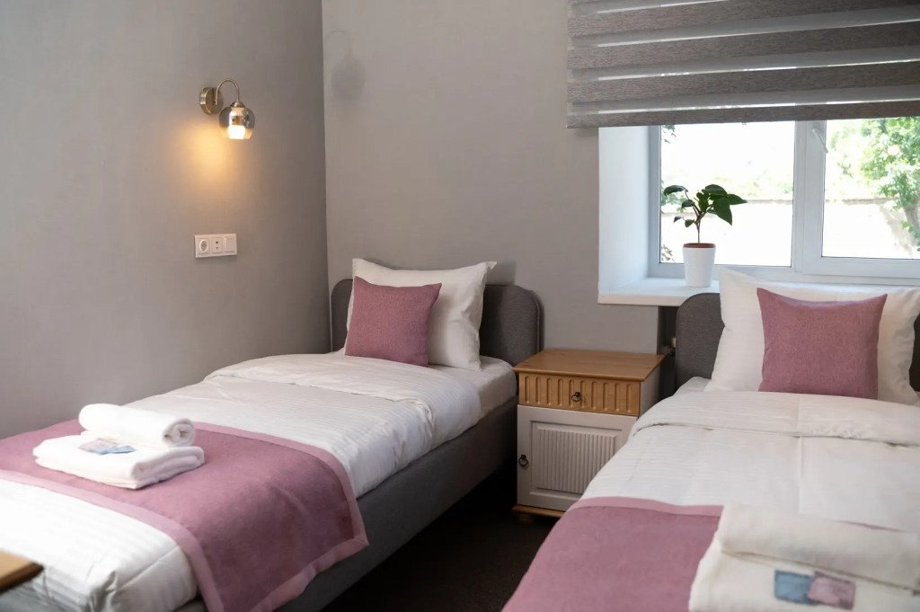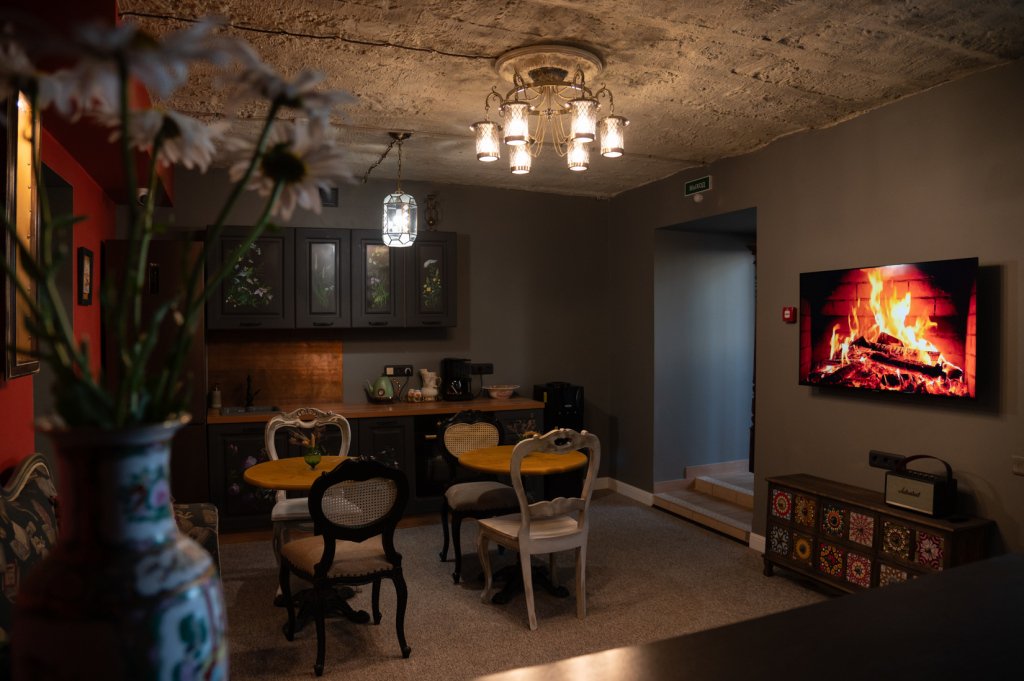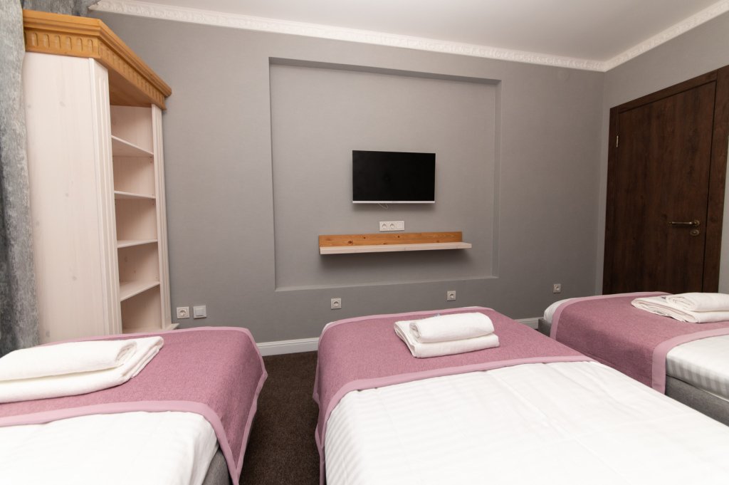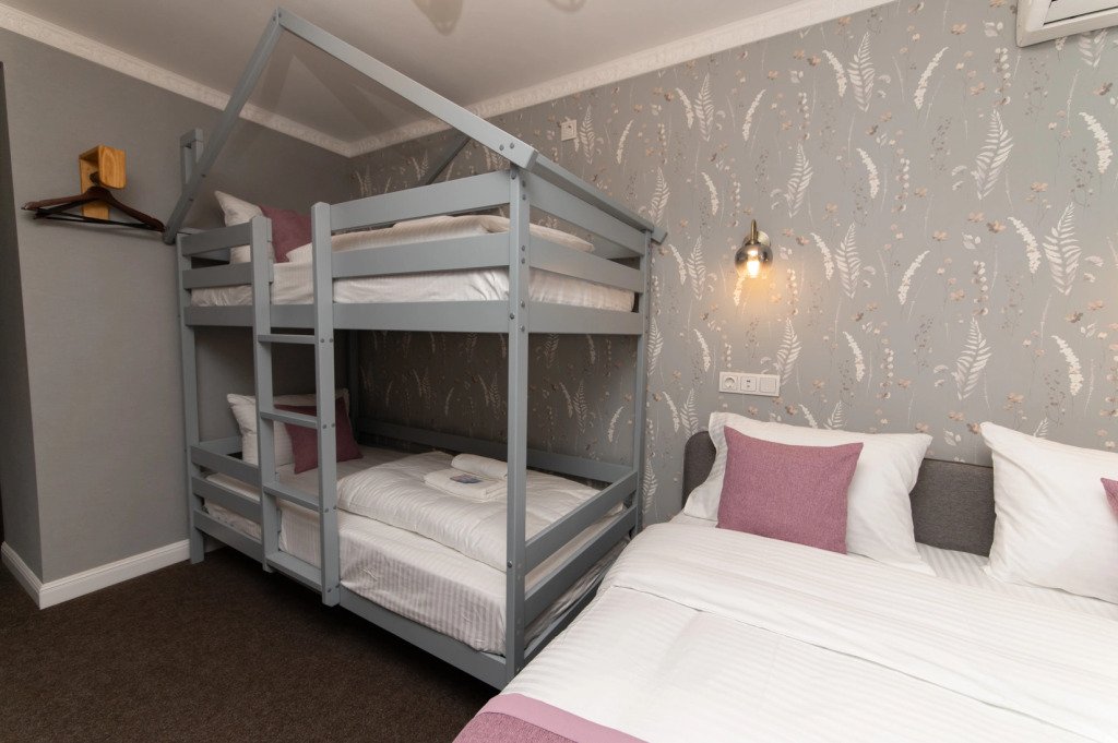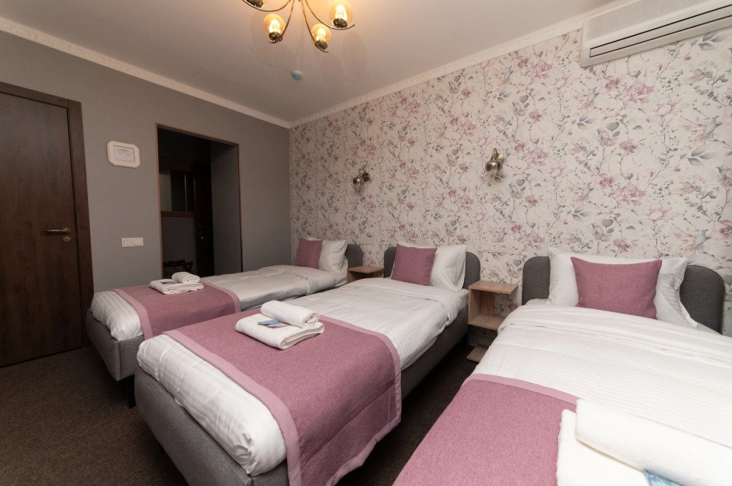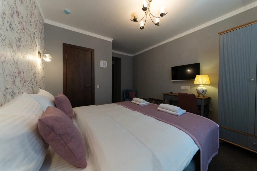 В каждом номере установлены: сплит система, тёплый пол, телевизор и TV приставка, фен, мебель из натурального дерева, ортопедические матрасы, освещение, противопожарная сигнализация и звукоизоляция. Также к услугам гостей есть шторы термо-blackout, бельё из сатин-хлопка, чемоданница, рольставни.