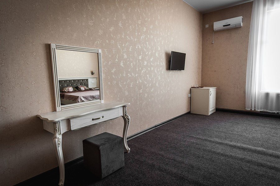 Wi-Fi, холодильник, кондиционер, светильник, фен, система безопасности, электронные замки, ванная комната, тапочки, ортопедический матрас, тумбы, стулья, шкаф для одежды, вешалки, журнальный столик, письменный стол, зеркало, пуфики, две комнаты, обслуживание номеров, унитаз, раковина, мягкая мебель, ковровое покрытие, отопление, душ, кулер на этаже, плиточное покрытие, кресло, две спальни, вид во двор, высокие потолки, две кровати «King size», стаканы, туалетный столик, стул, стол, тумба, туалетный столик, туалетные средства, туалет, сплит-система, диван-кровать, раскладной диван, внутренний телефон, телевизор с плоским экраном, мини-холодильник, москитная сетка, шкаф-купе, номер для некурящих, вид на бассейн, пуфик, общественный бассейнВ номере