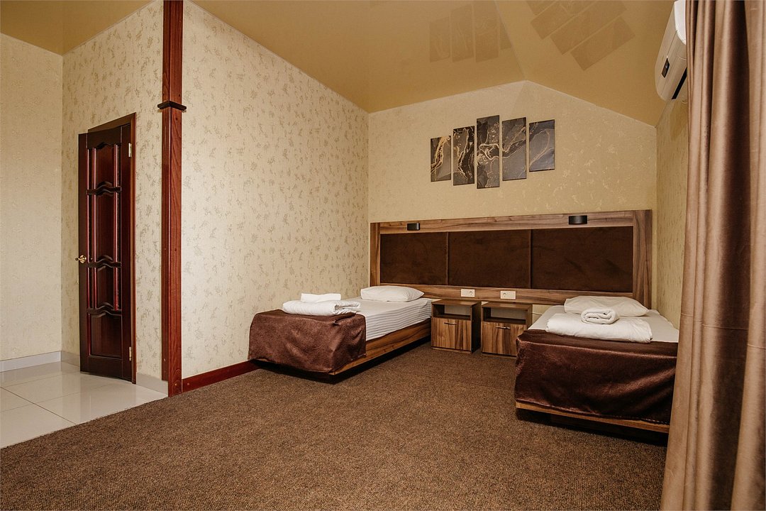 Номер комфорт с большой двухспальной кроватью, с большим раскладным диваном,столик, шкаф, холодильник, туалетные принадлежностиУслуги и удобства