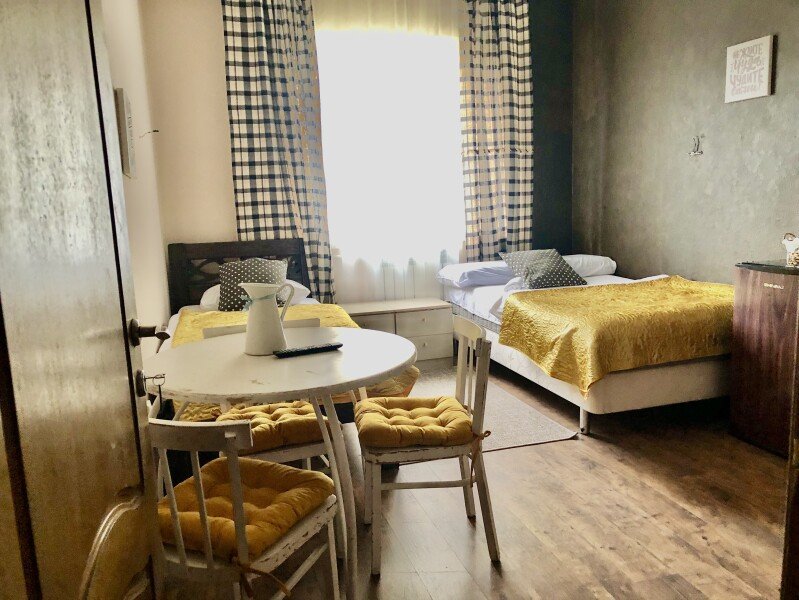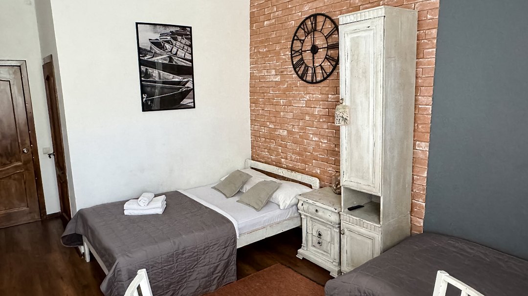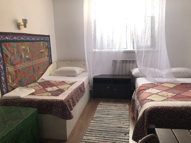 Четырехместный номер с 2-мя кроватями и собственным санузлом.