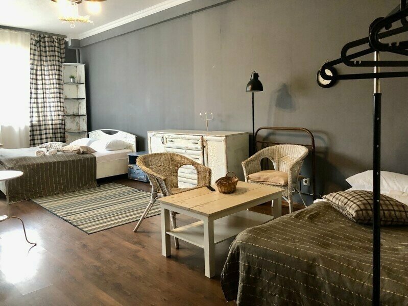 Номер выполнен в стиле эклектики: лофт и прованс. При входе вас встречает казачья икона с рушниками.