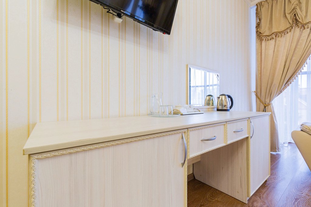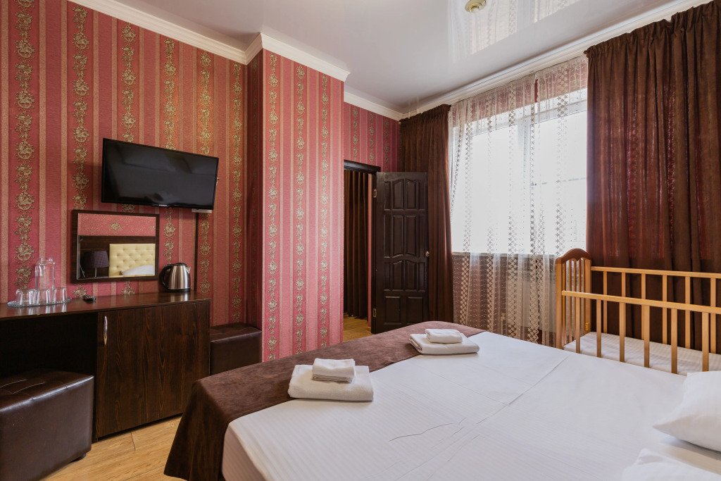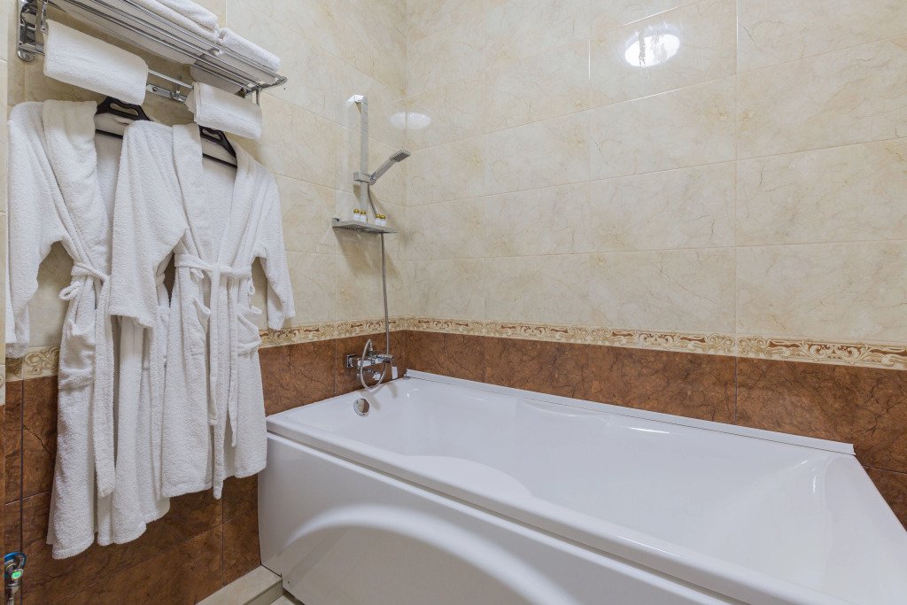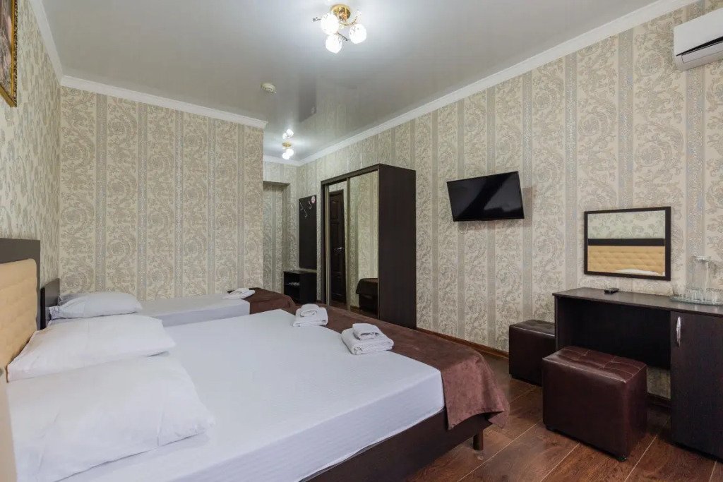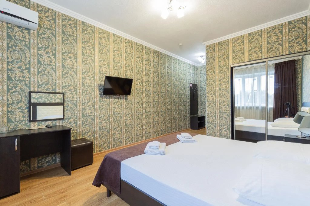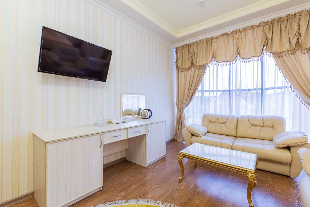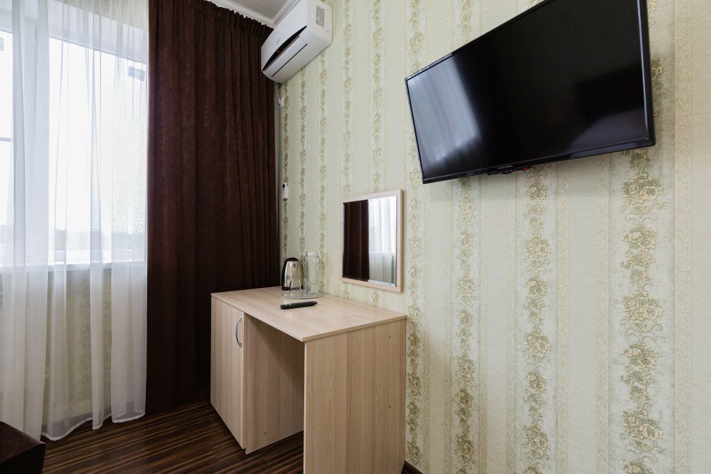 В номере гостей ждут телевизор и халат. Перечисленные услуги есть не во всех номерах.