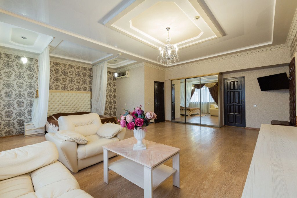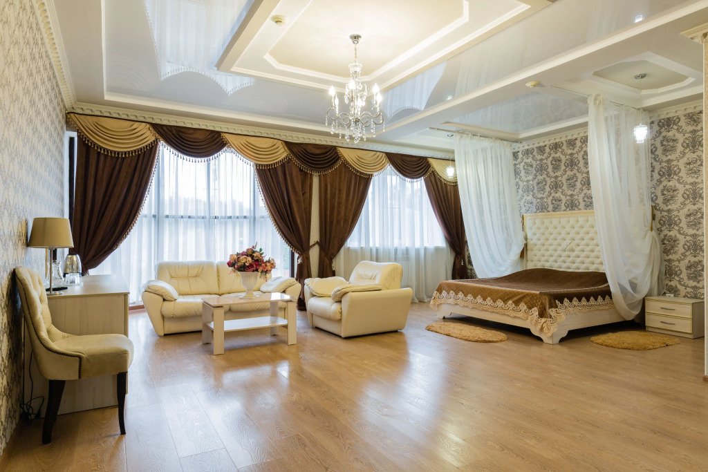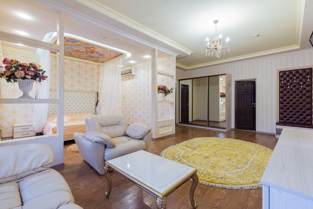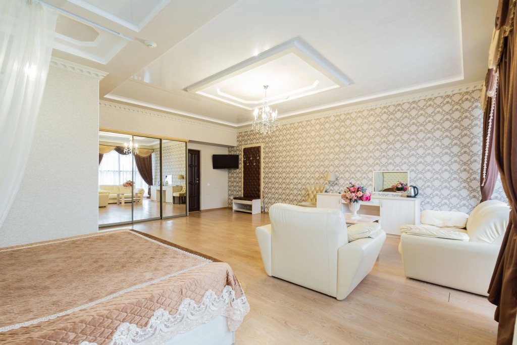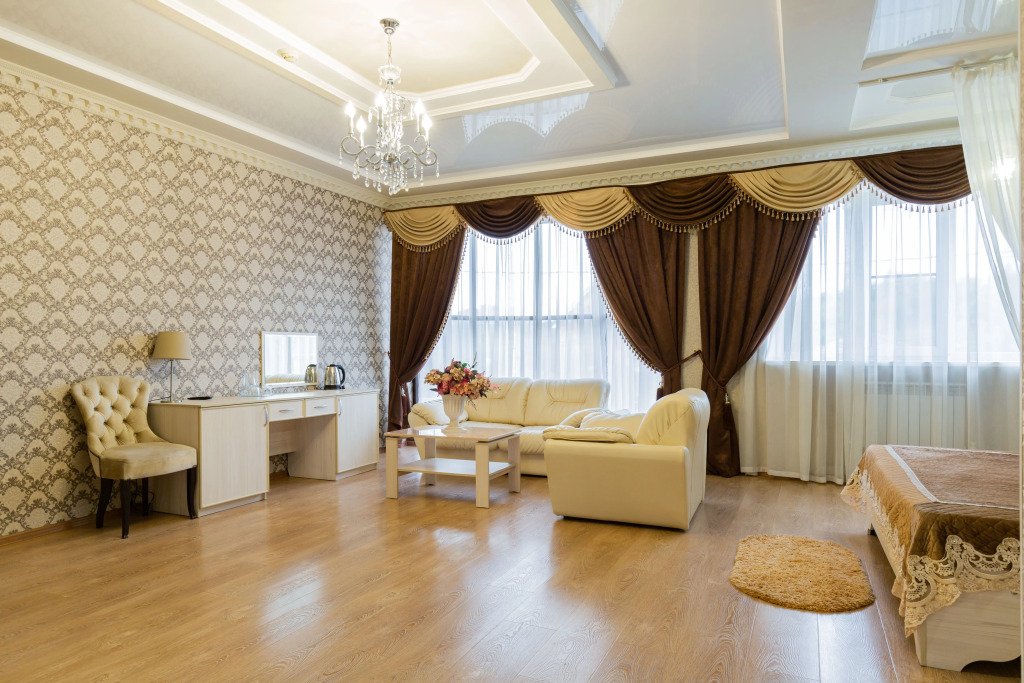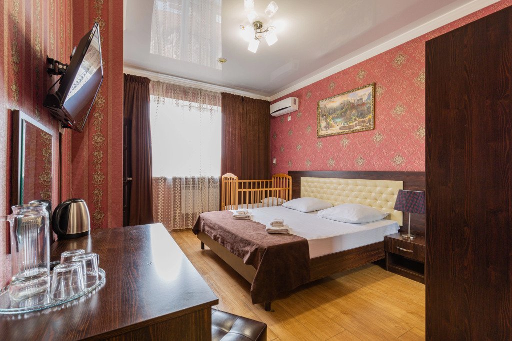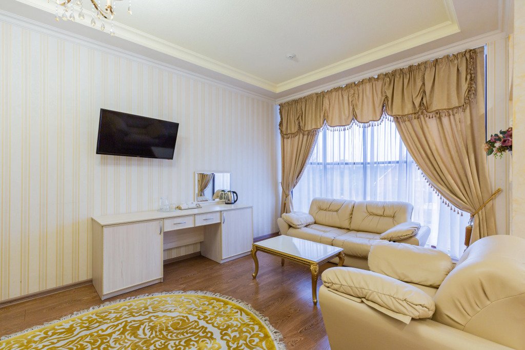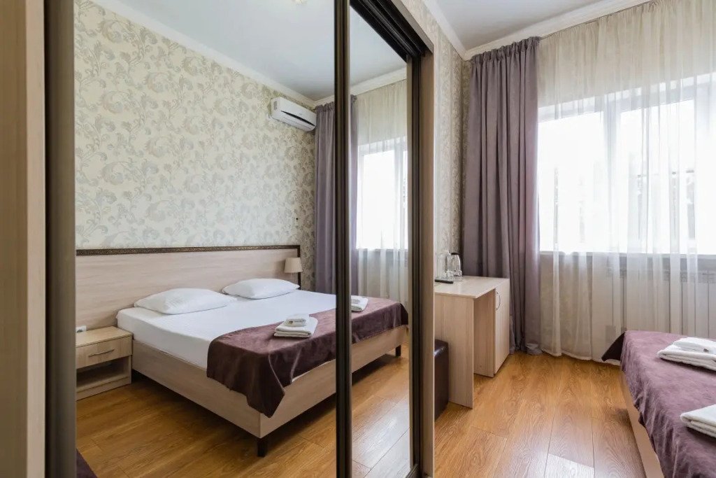 В номере гостей ждут телевизор и халат. Перечисленные услуги есть не во всех номерах.